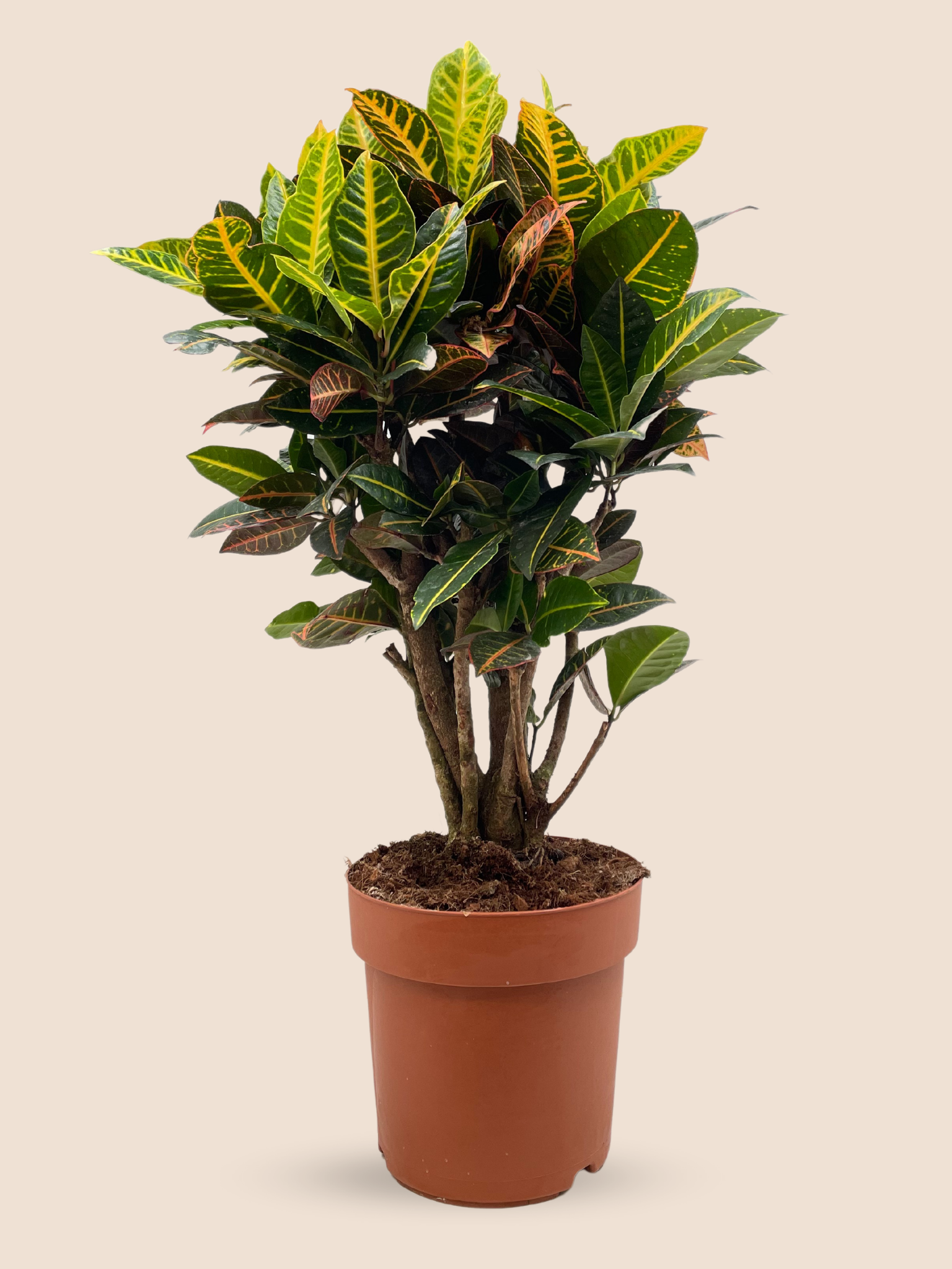 Croton is an ideal choice for a sunny spot at home or in the office. The stunning leaves, in red, gold, orange and green, are going to highlight any place with their vivid colors.