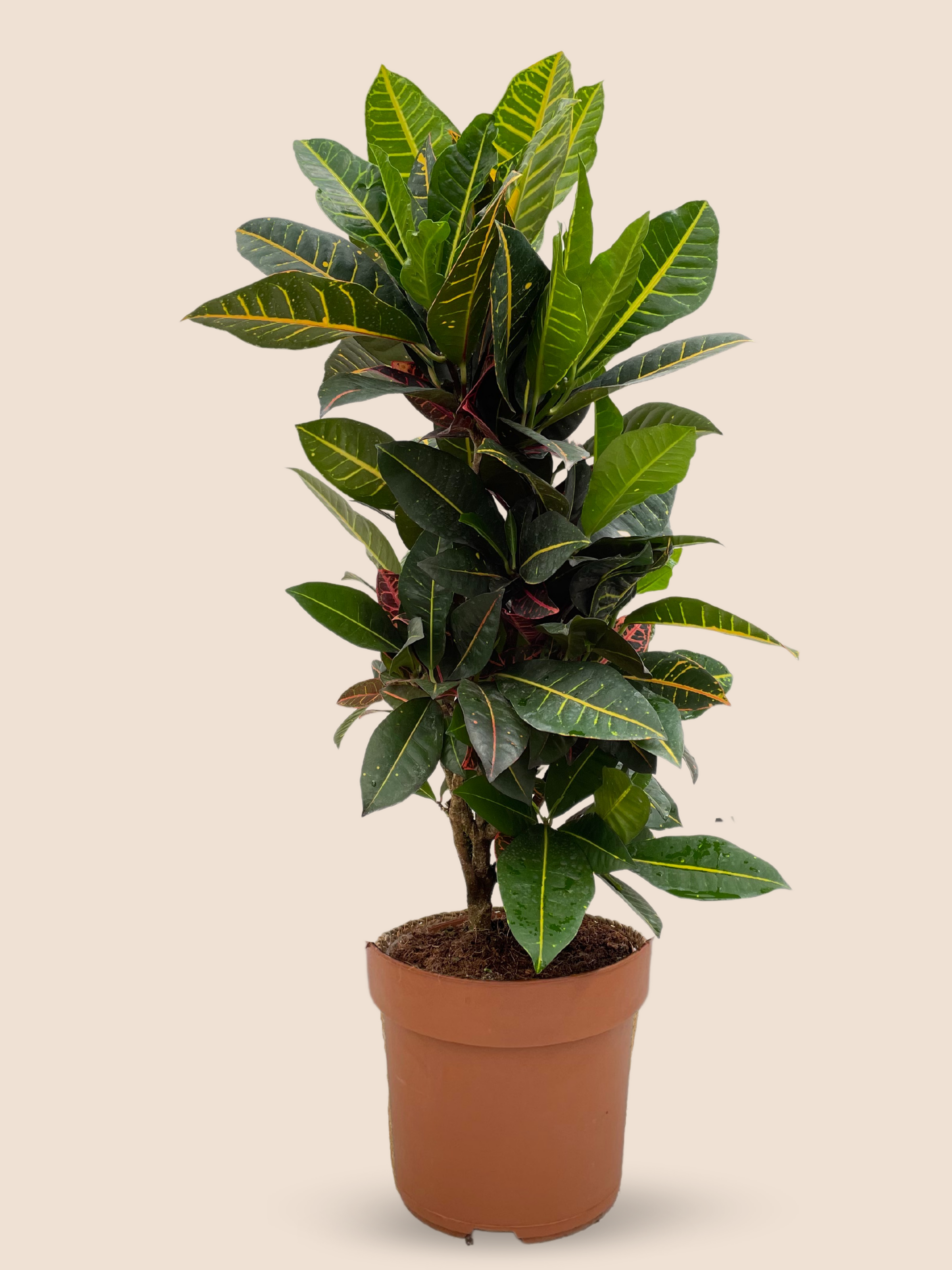 This easy-to-care-for plant needs plenty of bright light, a warm spot, and high humidity. It can take some direct sunlight but should not be placed in full sun during mid-day. Water it regularly and try to keep the soil moist. Some extra humidity is always welcome when it comes to Codiaeum, thus we are recommending you to mist its leaves at least once at 2 weeks. This plant likes temperatures between 15 and 30 degrees Celsius.