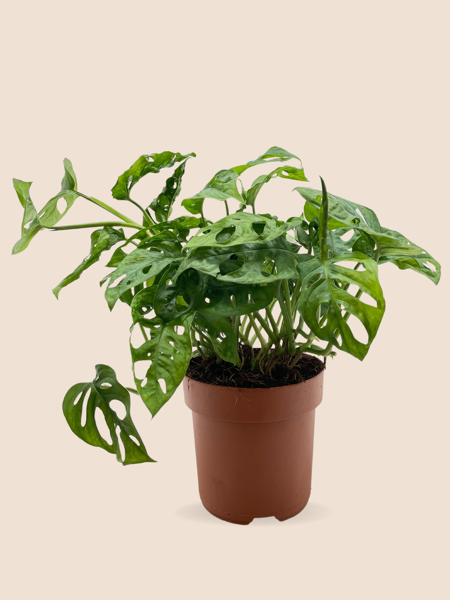 Monstera Obliqua is a classic potted plant with designer appeal. Its spectacular leaves grow from an intricate pattern of veins, making it a plant that's good at drawing admiration from your guests.